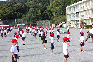 運動会へ向けて、開会式の練習が行われました。今日は並ぶ場所を確かめて、開会式の流れを確認しました。