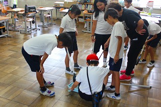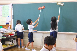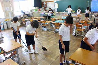 子どもたちは、掃除も丁寧に行います。休み明けは特にほこりが多いようです。すみずみまでていねいに掃除していました。