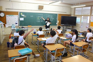 運動会の練習も取組んでいますが、授業も落ち着いて取組んでいます。運動場からはダンスやフラッグの音楽も聞こえてきますが、授業には集中しています。