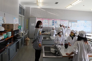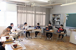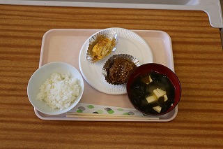 メニューは自分たちで考えたメニューで、1限目から準備をし、卵焼き、きんぴらごぼう風の糸コン、わかめと豆腐の味噌汁、そして自分たちが育てたご飯を頂きました。