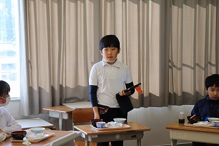 今日の給食のヨーグルトは、おいしかったようです。写真は3年生の給食風景です。
