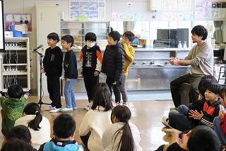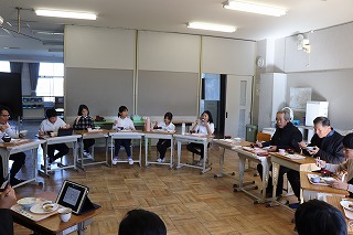 3限目に、田んぼの指導をしていただいた小坂さんと池山さんをお招きし、4・5年生でお米パーティーをしました。