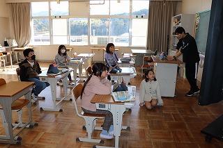 1限目は全校集会でした。習字の「表彰」を行ったあと、「校長先生の話」「11月の振り返り・12月の目標」「児童会遊び」を行いました。
