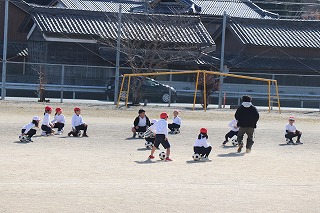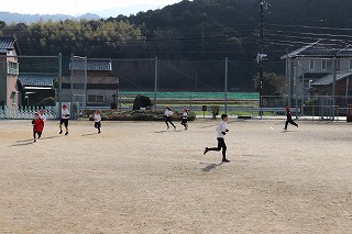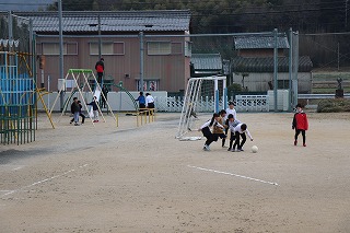 今日も1・2年生が体育の時間に外でサッカーをしていました。