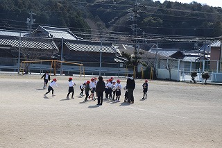 写真は昼休みの様子です。今日も外は空気が冷たかったですが、子どもたちはいつものように外で元気に遊んでいました。