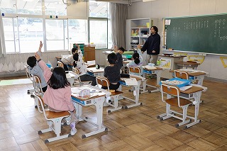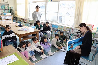 4限目は1年生が、5限目は2年生が、図書室で読み聞かせを聞かせていただきました。2年生は、残った時間で坊主めくりを教えてまらいました。トランプのように札を持ってしまう子がおり、難しかったようです。