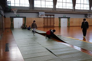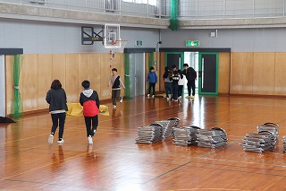 2/1(日)午前中に、本校にてまち協さんの避難訓練が行われます。準備のために体育館へ物資が搬入されました。