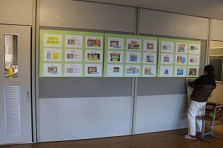 今日は、新入学説明会があります。いろいろな物品の記名する場所の説明が書かれた掲示物を、1年生教室前廊下にSSSの相口さんに掲示していただきました。