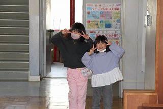 3連休は暖かい日でしたが、お出かけした人もいるでしょうか。火曜日は特に変わらぬ1日でした。昼休みの様子を取っていると1年生2人が「撮って、撮って」と寄ってきてくれました。画像は昼休みです。