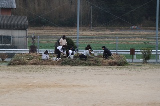 写真は、担当の説明、ドッジボール、しっぽ取りです。