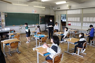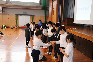 逃げ切った人には、4・5年生が準備した景品があったり、1・2・3年生から4・5年生にお礼のメッセージカードが送られたりと感謝を伝えあって会を閉じました。
