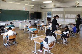 久しぶりの雨でした。1年生はいつものフッ素洗口を行いました。20分休み・昼休みは、体育館で遊びました。出張等で人出が少なかったので、画像は1限目の様子のみです。