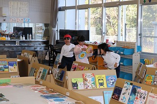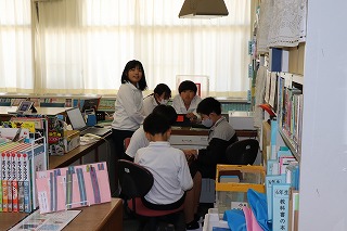 図書館イベントも3日目になると、いつも人がいるわけではないようです。昼休みの図書館は、委員会の子ども達だけでした。