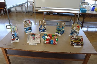 画像は、図書館イベントの係、4・5年生の廊下の作品展示の一部です。