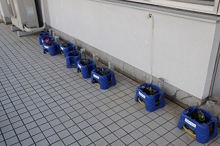 画像は左から、1年生の植木鉢、1年生の花壇、2年生の花壇です。