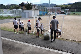 3限目に5年生が職員室前の花壇の雑草を抜いてくれました。ひまわり・ほうせん花を育てていましたが、花の時期も終わり、きれいに整備してくれました。道路側の花壇は、まだ花が元気に咲いています。伸びていた雑草は、同日午後、岡部先生と南出さんが抜いてくれました。18日は、まち協の「にこにこ花壇冬の花植え」ですので、学校も近い頃に植え替えを行います。