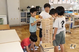 先日寄贈されたカプラを使ってみました(本日、午後2年生が利用)。仲間で協力して大きな作品を作ったり、一人で形を考えながら作ったりしていました。崩してはいけないのでみんな集中して取り組んでいました。