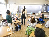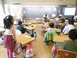 2年生の生活科の学習で、クラスの友達のお母さんをお招きし、その生まれ故郷であるインドネシアのバリ島についてお話を聞きました。今回のテーマは「バリ島の秘密を知ろう」です。まず、食べ物についてクイズ形式で教えていただきました。焼きそばに似たミーゴレンを知っている子もおり、材料や日本の食べ物との違いを詳しく学べました。