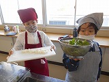 ふれあい学級で、お友達の誕生日会を開きました。 今回は、学級園で大切に育てた大根を使って「特製ラーメン」作りに挑戦! 子どもたちは包丁で大根を上手に切り、栄養たっぷりの葉っぱも余すところなく具材にしました。 自分たちで育てた野菜が入ったラーメンは、いつもとは一味違う格別のおいしさ。みんなで楽しく味わったあとは、先生たちにもお裾分けをして喜んでもらいました。 心もお腹もいっぱいになった、素敵なお誕生日会になりました。