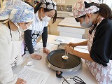 アメ職人クラブ:は、ホットプレートを使い、砂糖からべっ甲飴を作る活動をしていました。教室には甘い、いい匂いが広がり、できあがった飴はとてもおいしそうでした。