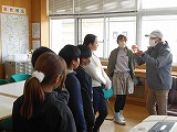 活動の最後には、地域の方々から、めんこ、コマ、だるま落とし、けん玉などの遊びのコツを教えていただきました。これは、今度1年生を招待して昔の遊びを教えるための準備です。教える側の意識を持って、熱心に指導を受けていました。