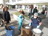 12月14日(日)、早朝まで冷たい雨が降り、かなり冷え込んだ日でしたが、早修ふるさと未来NAVI主催のもちつき大会が無事に開催されました。お昼前には幸いにも寒さもずいぶん和らぎ、会場は大盛況でした。