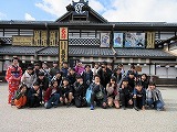 最後の見学地、太秦映画村へ。バスガイドさんの詳しい案内を聞きながら向かう途中、珍しいタクシーに2台も遭遇するという幸運に、子どもたちからは思わず拍手が起こりました。映画村では恒例のカレーライスを食べた後、「お化け屋敷」へ直行するグループも。アトラクションや買い物であっという間に時間が過ぎていきました。