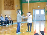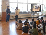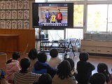 地域の方々のご挨拶では、お名前とともに普段の活動への思いをお話しいただきました。その後の「二択クイズ」では、地域のみなさんの正解率の高さに子どもたちから驚きの声が上がる一幕も。