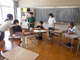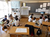 始業式の後、各学年で後期の教科書を配ったり、夏休みの課題を集めたりして、クラスが動き始めました。工作や自由研究の発表会をしているクラスもありました。