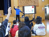お話が終わった後は、体育館で子どもたちと一緒にビーチバレーボールを楽しんでいただきました。和田さんと一緒にボールを追いかける中で、子どもたちはコミュニケーションの多様性やスポーツの楽しさを肌で感じることができたようです。