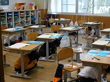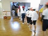 まず、子どもたちは自分の身を守る行動を行った後、各学年で事前に確認した最適な経路を通って運動場へ一次避難しました。安全確認を終えてから、すぐに校舎3階への二次避難を開始。全ての児童が6分少々で静かに、速やかに3階まで避難を完了することができました。