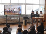 式の後には表彰式を行い、続いて生徒指導担当から、冬休みに大切にしてほしい「3つの3文字」(いのち・じかん・おかね)について話をしました。 最後には「ふれあい学級」の皆さんから、素敵な演奏映像のクリスマスプレゼントがありました。素晴らしい音色に会場からは大きな拍手が沸き起こり、校内が温かな空気に包まれました。