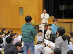 会の初めに、2年生から1年生のみんなに、「昔の遊びを知ってもらうこと」と「楽しく遊ぶこと」という今日のめあてが説明されました。