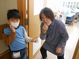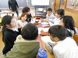 活動の最後には、地域の方々から、めんこ、コマ、だるま落とし、けん玉などの遊びのコツを教えていただきました。これは、今度1年生を招待して昔の遊びを教えるための準備です。教える側の意識を持って、熱心に指導を受けていました。