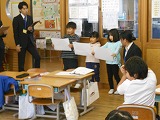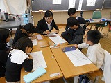 1年生で、皇學館大学教育学部国語科教育ゼミのみなさんに群読出前講座をしていただきました。全員では「どうぶつのなきごえ」、グループでは「がっこうたのしいな」を群読しました。登場人物や場面の様子を考え、声の大きさや速さに注意しながら友だちと声を合わせて音読をする楽しさを教えていただきました。最後は各グループごとに群読を披露しました。17名のみなさんありがとうございました。