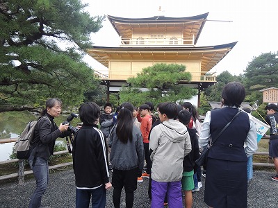 京都へ移動し、金閣寺へ。金色に輝く金閣寺に、感嘆の声が上がっていました。