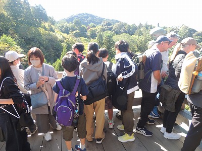 銀閣寺や庭園を見学後、清水寺へ。清水の舞台から見下ろしたり、音羽の滝で目がいつつ水を飲んだりすることができました。