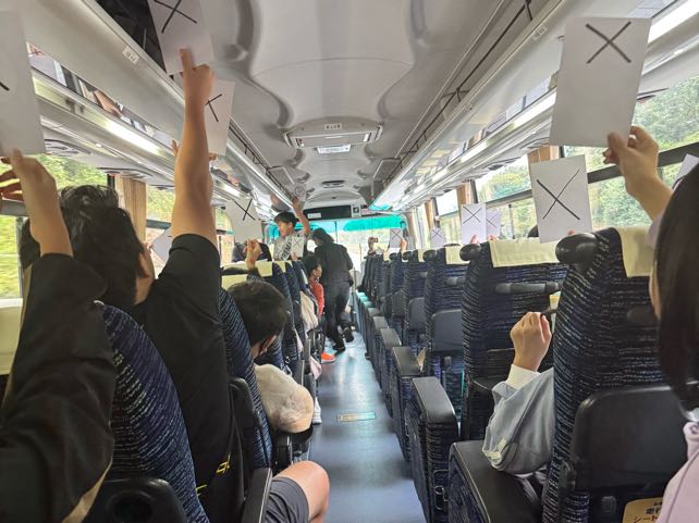 松阪ICまで思いの外きりました。嬉野SAで休憩して、奈良に直行する予定です。バスレクも始まりました。今伊賀市です。