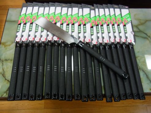 - 先日、4年生が地元の山口工務店様にゲストティチャーとしてお越しいただき、木工教室でお世話になりました。その際に使用した、かなりの年数使ってきた本校ののこぎりを見て、子どもたちに少しでもよい道具をということで、山口工務店様が20丁もののこぎりを寄贈してくださいました。私も持たせていただきましたが、手になじみ、滑りにくいグリップで、刃は切れ味鋭そうです。刃物はよく切れる方がけがをしないと聞いたことがあります。これまでののこぎりでも楽しそうに木工に取り組んでいた子どもたちですが、新しいのこぎりを手にし、喜ぶ子どもたちの顔が目に浮かびます。(実際、使ったクラスが、「10倍よく切れる!」と大喜びでした。)
