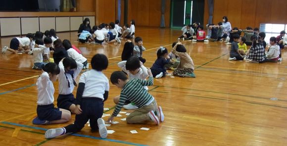 2年生は、防災についての講義や動画を視聴した後、防災かるたで、防災の基礎知識を学びました。その後、起震車体験です。