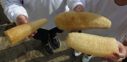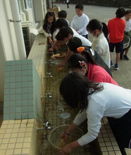 4年生は理科で、へちまを半年間育ててきました。つるが伸び、花が咲き、実がなり、色が変わってくる・・・そして、乾燥したへちまの実の皮をむくと・・・。きれいな繊維が残りました。種もたくさんとりました。植物の成長は、様々な変化が見られますね。さあ、長く観察してきて、気づいたこと、分かったことをまとめましょうね。