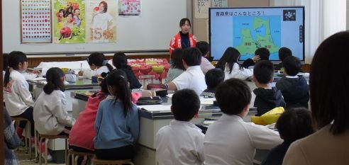 今日は、先に書いた、私財を投じ、苦労をされ新田を開いた方の子孫である米山氏をお迎えし、4年生が地域学習を行いました。米山家に伝わる貴重なものも見せていただき、子孫の方から直接お話を聴くことできた子どもたちは感動の面持ちで聞き入っていました。右写真は、その米山新田を切りひらいた方が実際に着用された陣羽織を見せていただいているところです。(子どもが見ている資料に顔写真が載っている方が目の前で話してくださっていることに子ども達も目を輝かせていました)