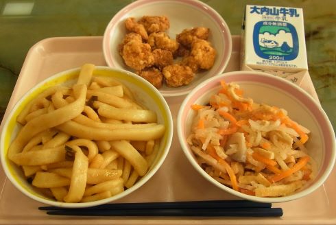 今日は、給食週間の最終日です。「今日は伊勢うどん」「からあげもあるよ」と話しかけてくれた子がいました。楽しみな様子が伝わってきます。