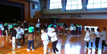 1つ上のお兄さん・お姉さんになる1年生が、歌を歌ったり、ゲームをしたりして歓迎した後、校舎内を回りました。