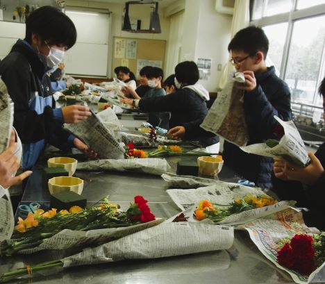 伊勢や三重の花について学習させていただいた後、実際にアレンジメントに挑戦です。