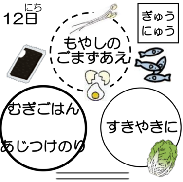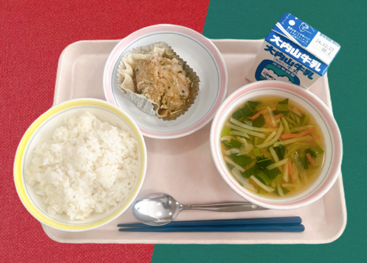 ●麦ごはん、味付け海苔、牛乳、すき焼き煮、もやしのごま酢和え