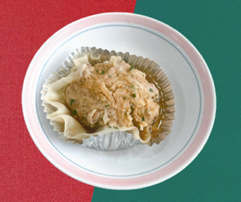 ●麦ごはん、野菜ふりかけ、手作りジャンボシューマイ、具だくさんスープ