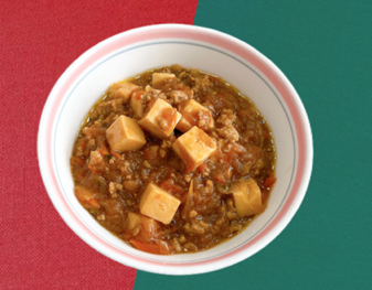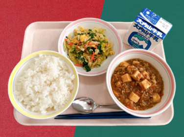 ●麦ごはん、牛乳、麻婆豆腐、中華サラダ