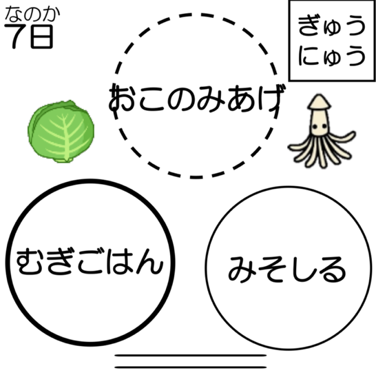●麦ごはん、牛乳、お好み揚げ、味噌汁